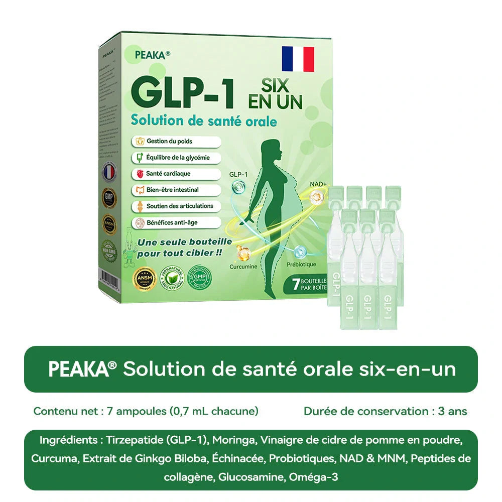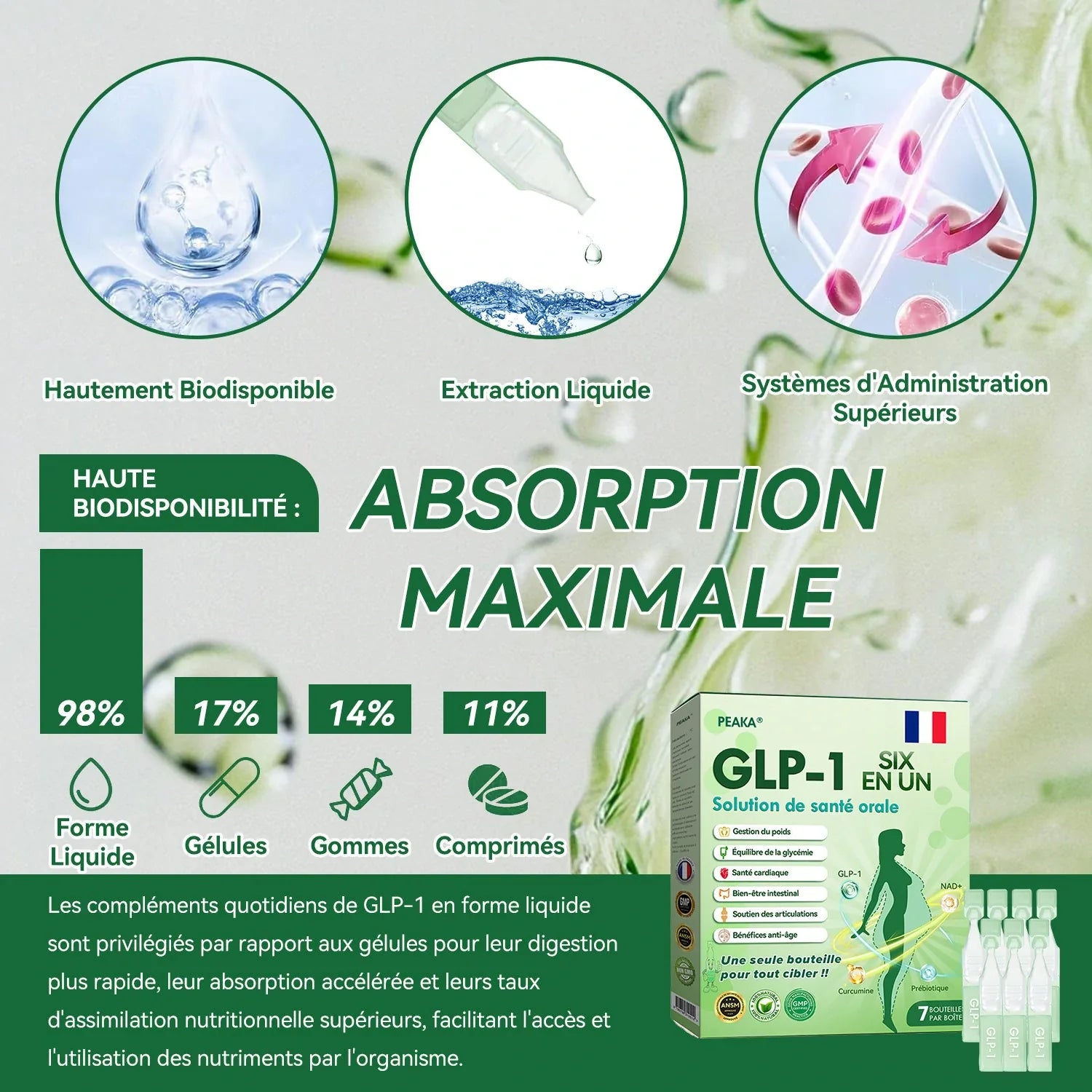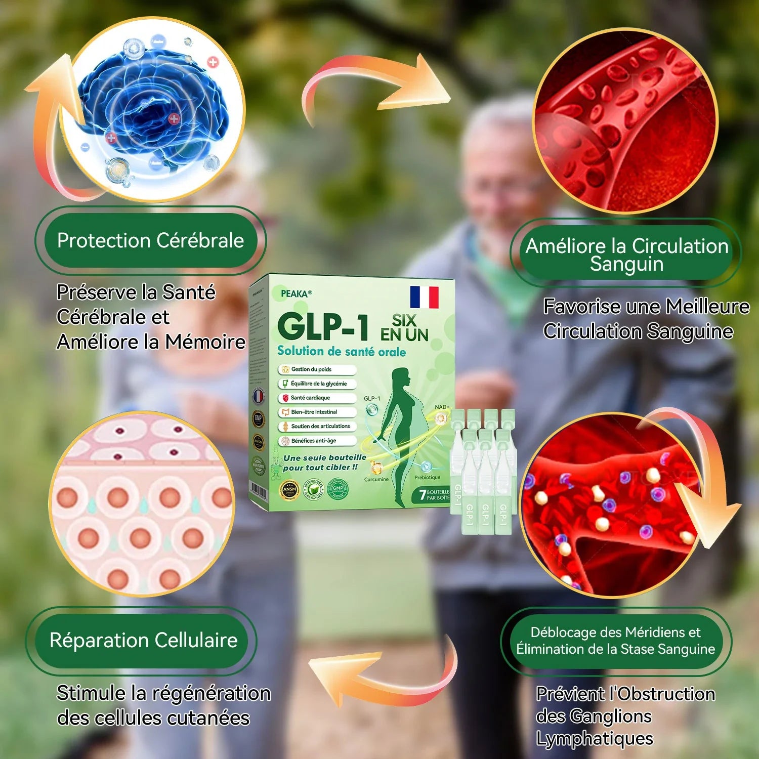 Testée cliniquement par des endocrinologues. la solution buvable Santé 6-en-1 au GLP-1 active le métabolisme et améliore significativement l'obésité ainsi que d'autres troubles de santé. dès 7 jours seulement.